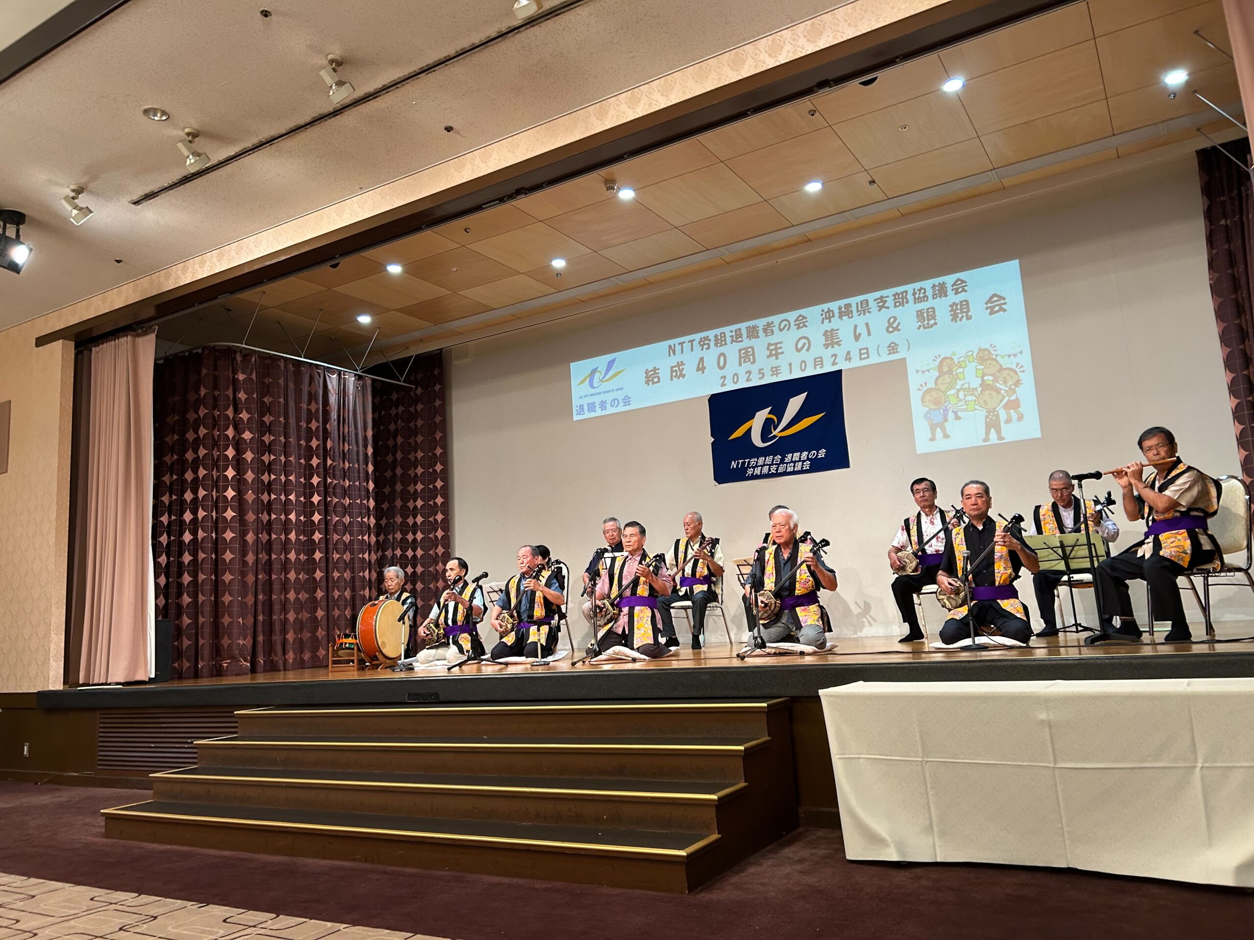 三線サークルの活動状況 三線サークル 2025.11.062025.11.19 三線サークルは、毎年の電友会総会・懇親会をはじめNTT労組退職者の会総会・懇親会やNTT沖縄支店主催の退職者の集い、年初の情報労連沖縄県協旗開き等の幕開けに出演しております。 令和7年3月には、中国福建省との音楽交流会に参加し国際交流の一翼を担いました。 令和7年11月17日(月)NTT沖縄支店退職者の集いの幕開け出演しました。 OLYMPUS DIGITAL CAMERA OLYMPUS DIGITAL CAMERA
