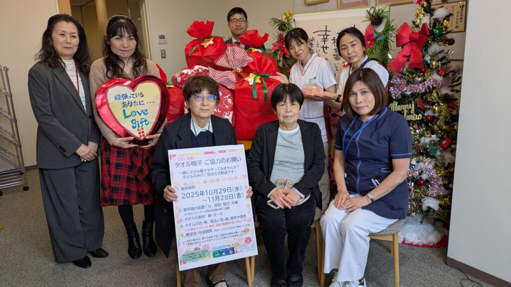 タオル帽子をクリスマスプレゼントとして合計216枚(内電友会40枚)