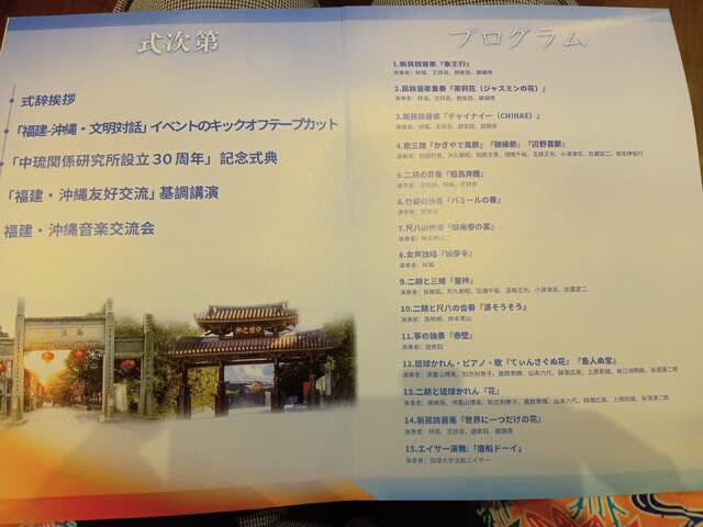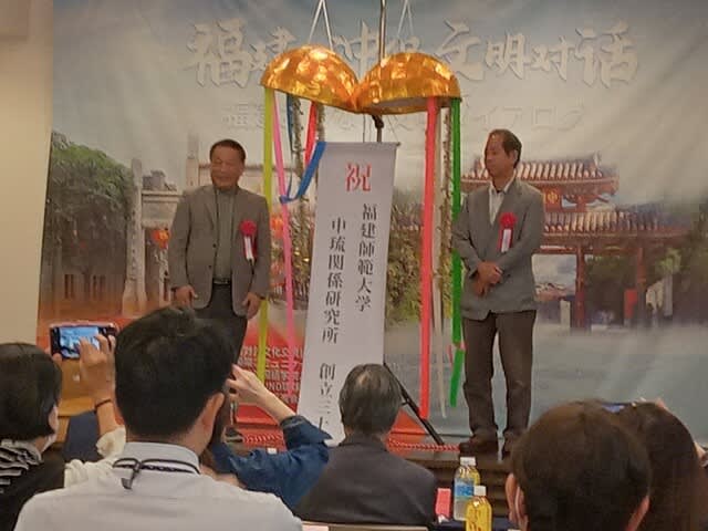 先ず、①イベントのキックオフ、②「福建師範大学中琉関係研究所設立30周年」のくす玉割、③上里賢一琉大名誉教授による基調講演の後、④福建・沖縄音楽交流会が開催されました。