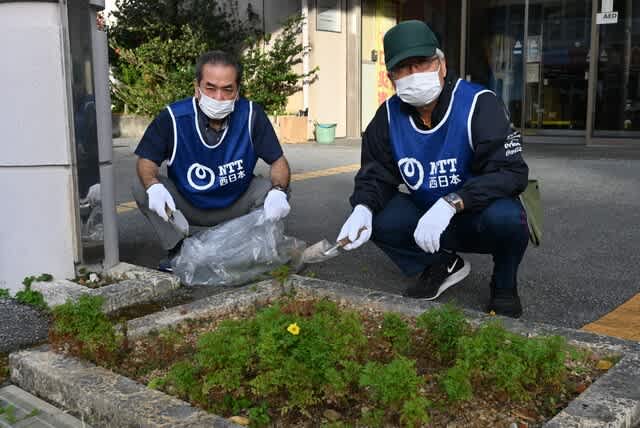 NTT環境クリーン活動及びみどリいっぱいプロジェクト 事務局からのお知らせ 2025.03.052025.11.05 2024年度NTT環境クリーンに参加しました。 ①2025.2.27(木)NTT楚辺ビル周辺の清掃活動に電友会から会長他5名が参加しました。 ②2025.3.4(火) NTT城間ビル前の清掃活動に電友会から3名が参加しました。